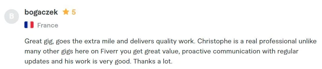 I strive to go above and beyond to deliver quality work. Don’t take my word for it, read what my customers from all around the world have to say.
